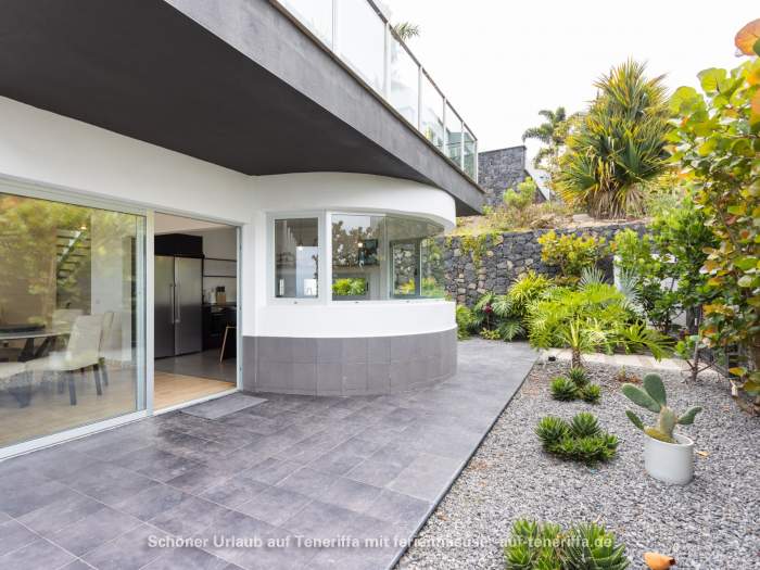 Der Außenbereich der Villa ist ganz auf Entspannung und Genuss ausgerichtet. Im privaten Garten können Sie die Sonne Teneriffas genießen, während der Pool mit seinem beeindruckenden Meerblick zum Schwimmen, Abkühlen und Träumen einlädt. Auf dem Balkon mit gemütlichem Sitzbereich lassen sich Sonnenaufgänge und laue Abende gleichermaßen erleben, begleitet vom Rauschen des Meeres in der Ferne.