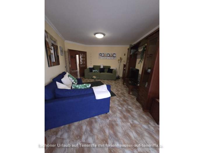 Das Wohnzimmer lädt mit einer Ausziehcouch (1,40 m) und einem zusätzlichen Sofa zum Relaxen ein. Das angrenzende Esszimmer befindet sich direkt neben der voll ausgestatteten Küche, die Zugang zu einer der Terrassen hat. Die Küche ist mit einem großen Kühlschrank mit Gefrierfach, einem Ceranfeld, Backofen, Geschirrspüler sowie Kleingeräten wie Kaffeemaschine, Toaster und Wasserkocher ausgestattet.