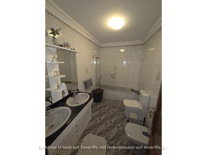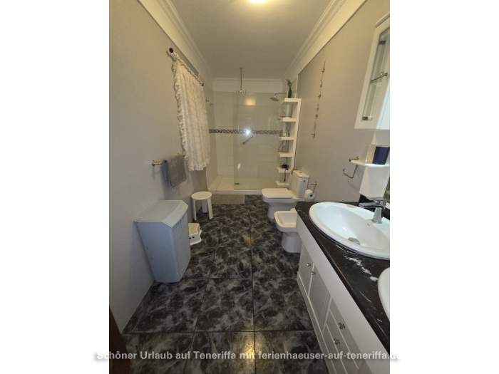 Für Privatsphäre sorgt das Hauptschlafzimmer mit eigenem Badezimmer, das eine Walk-In-Dusche mit Regendusche, Waschbecken, Bidet und WC umfasst. Das zweite Badezimmer, mit Badewanne, Dusche, Waschbecken, Bidet und WC, befindet sich in unmittelbarer Nähe zu den anderen Schlafzimmern. Eine Waschmaschine steht im Obergeschoss zur Verfügung, um den Aufenthalt so bequem wie möglich zu gestalten.