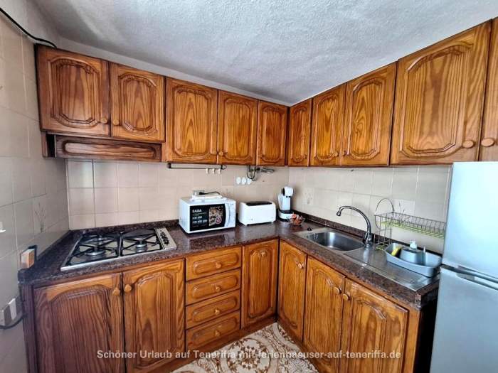 Die Küche ist mit einem Herd mit vier Kochfeldern, einem Kühlschrank samt Gefrierfach, Toaster, Kaffeemaschine und Mikrowelle ausgestattet, so dass die Selbstversorgung gewährleistet ist.