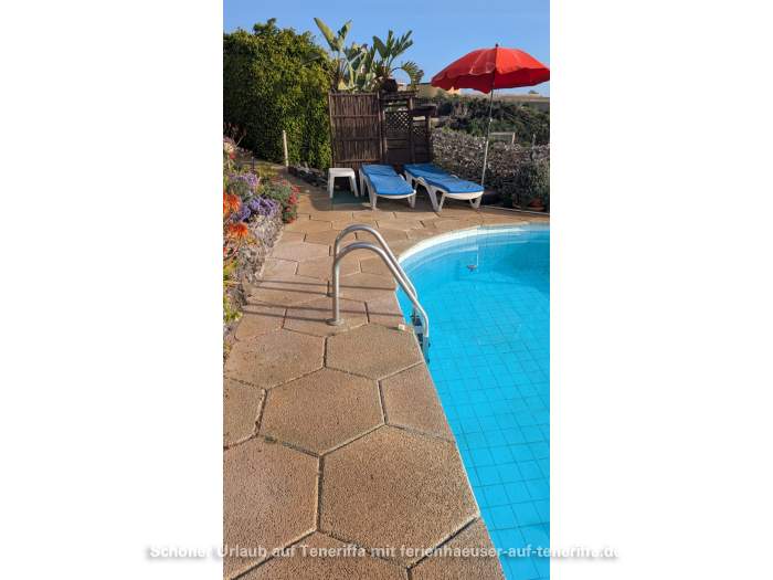Zur Finca gehört ein Poolbereich, der einen tollen Ausblick auf die Küste, das Meer und die Nachbarinsel La Gomera. Auch wenn die Vermieter mit auf dem Grundstück leben, haben Sie den 4 x 8 Meter großen Pool exklusiv zur Nutzung. Der Pool ist solarbeheizt und somit problemlos das ganze Jahr hindurch nutzbar.