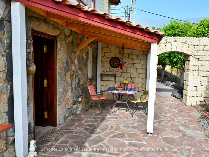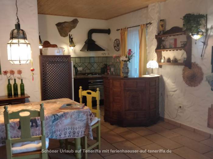Die gemütliche Ferienwohnung, die Teil einer Villa ist, befindet sich in einem 1.500 Quadratmeter großen blumenreichen Garten ohne Nachbarn. Sie verfügt über ein geräumiges Wohnzimmer mit offener Küche, einem großen Esstisch mit Stühlen, einem Gefrierschrank, einem 4-Flammen-Herd, einem elektrischen Backofen, einem Mixer, einer Mikrowelle und allem, was man im Urlaub benötigt. Ein Schlafzimmer und ein Badezimmer mit Dusche sind vorhanden. Für ein Kind bis zu 12 Jahren kann ein zusätzliches Bett aufgestellt werden. Draußen steht Ihnen ein etwa 40 Quadratmeter großer Essbereich direkt neben dem Eingang auf der privaten, romantischen teilüberdachten Terrasse zur Verfügung. Ein weiterer Essbereich befindet sich im Garten unter einem Neembaum mit freiem Blick auf das Tal, das Meer und den Ort Candelaria. Annehmlichkeiten wie Sat-TV, eine Stereoanlage mit CD, sowie Grillmöglichkeiten im Garten oder auf der Terrasse mit Blick auf das Meer, den Pool, Santa Cruz, das Anagagebirge und gelegentlich bei klarer Sicht Gran Canaria sind ebenfalls vorhanden, ebenso wie ein Parkplatz. Vom Liegestuhl am Pool aus haben Sie auch eine Panoramaaussicht, da der Pool so gut wie allein für Sie zur Verfügung steht.