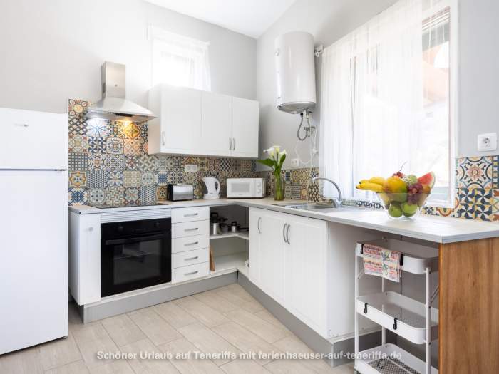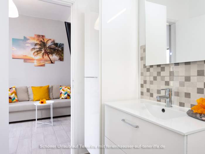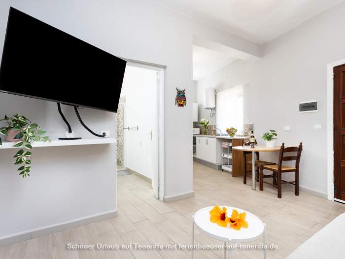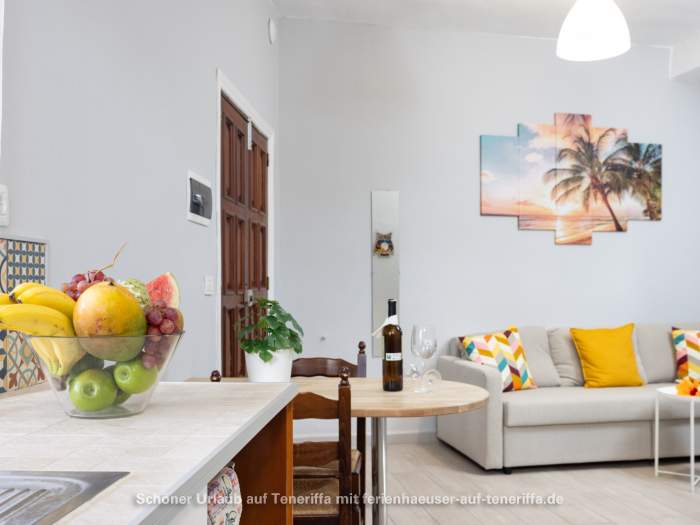 Die Terrasse bietet einen Blick auf das Meer oder den imposanten Teide (3.718 Meter). In der Wohnung und auf der Terrasse steht WLAN zur Verfügung.