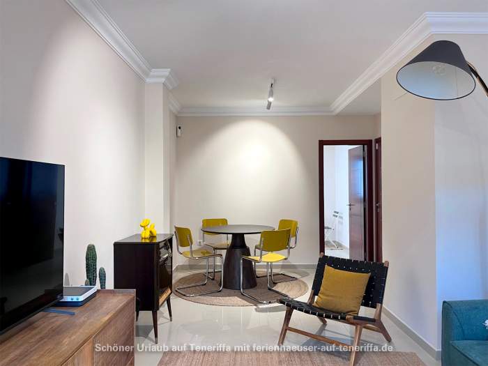 Die Wohnung ist äußerst hell und verfügt über zwei Schlafzimmer (eines mit Doppelbett und eines mit Einzelbett), ein voll ausgestattetes Badezimmer, ein Wohn- und Esszimmer mit Smart-TV und WLAN sowie eine komplett ausgestattete Küche mit Backofen, Cerankochfeld, Mikrowelle, Geschirrspüler, Waschmaschine und allen notwendigen Elektrogeräten. Wir haben uns um jedes Detail gekümmert, das Sie während Ihres Aufenthalts benötigen könnten. Annehmlichkeiten wie Smart-TV, WLAN und Waschmaschine sprechen auch Langzeiturlauber und Überwinterer an.