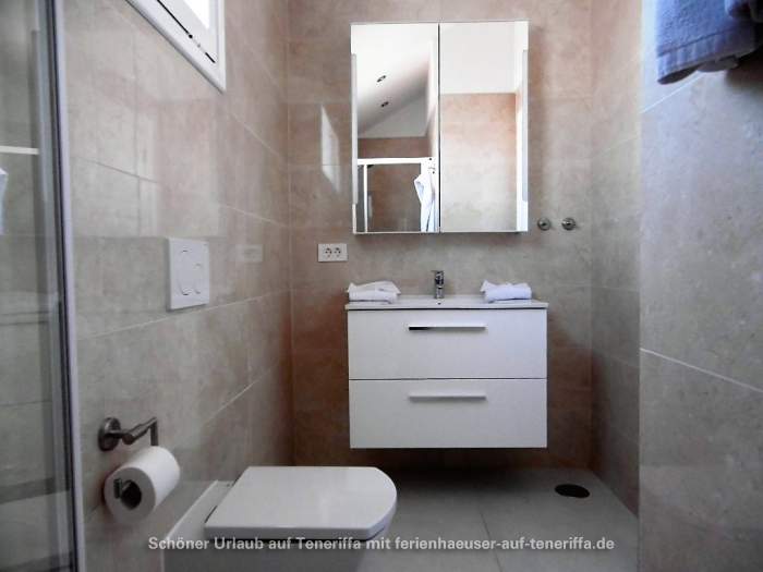 Die Ferienwohnung im Parque Santiago III ist 66 m² groß und erstreckt sich über zwei Etagen. Bis zu 4 Personen finden hier Platz. In der oberen Etage befindet sich ein Schlafzimmer mit einem gemütlichen Doppelbett. Hier befindet sich auch das Badezimmer, das mit WC, Waschbecken, Badezimmerschrank und einer Dusche ausgestattet worden ist. Ebenfalls in der oberen Etage befindet sich eine Sonnenterrasse samt Sonnenliegen, auf der Sie sich entspannen und die Sonne Tenneriffas genießen können.