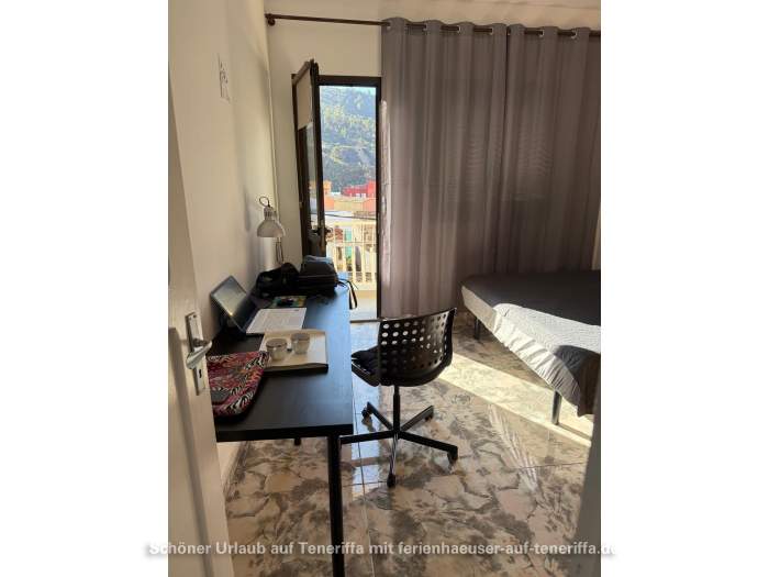 1 Schlafzimmer mit einem Doppelbett (1,50 × 2 m) und Schreibtisch – ideal, falls Sie im Urlaub etwas arbeiten möchten.