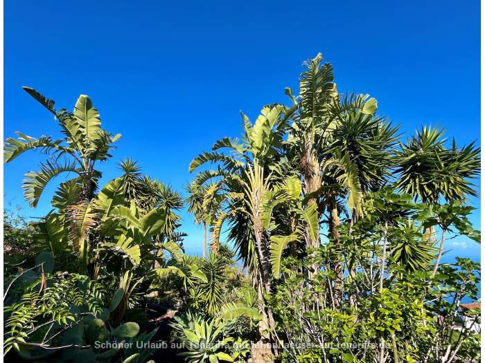 - Im Garten tropische Blumen und Pflanzen, dazu Wein & heimisches Obst