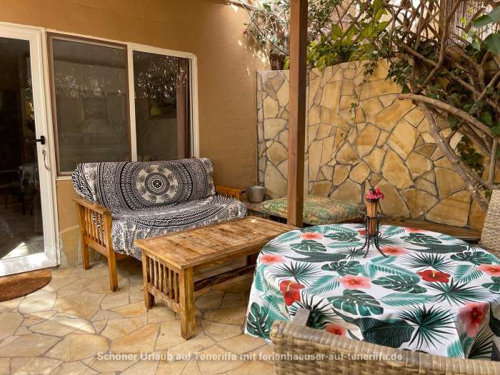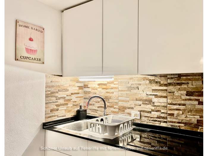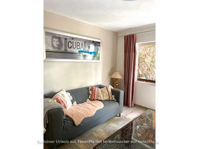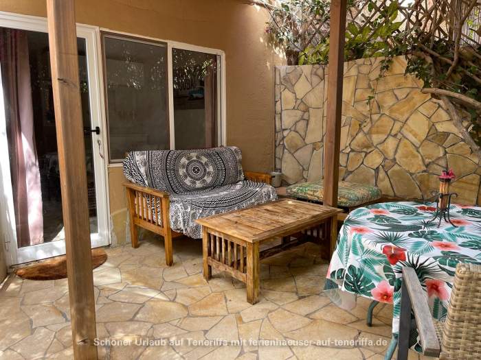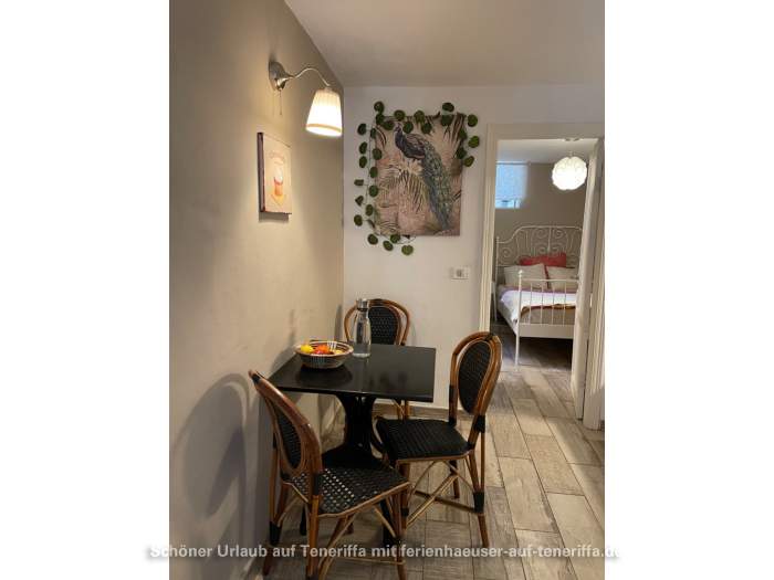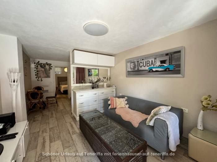 Der Wohnbereich ist modern eingerichtet und mit einem Router, einem Fernseher sowie einer Musikanlage ausgestattet, sodass Sie auch im Urlaub nicht auf Unterhaltung verzichten müssen. Der Zugang zur Wohnung erfolgt über eine private Terrasse, die sich ideal für ein Frühstück im Freien oder entspannte Stunden im Freien eignet.