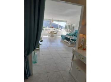 Helles Ferienhaus (82m²) mit drei Terrassen, tropischem Garten und Meerblick sowie beheiztem Gemeinschaftspool (10 X 18m). Hier stehen Ihnen Sonnenliegen kostenlos zur Verfügung. Genießen Sie den traumhaften Blick auf Los Cristianos, Playa de las Americas und die umliegenden Berge.