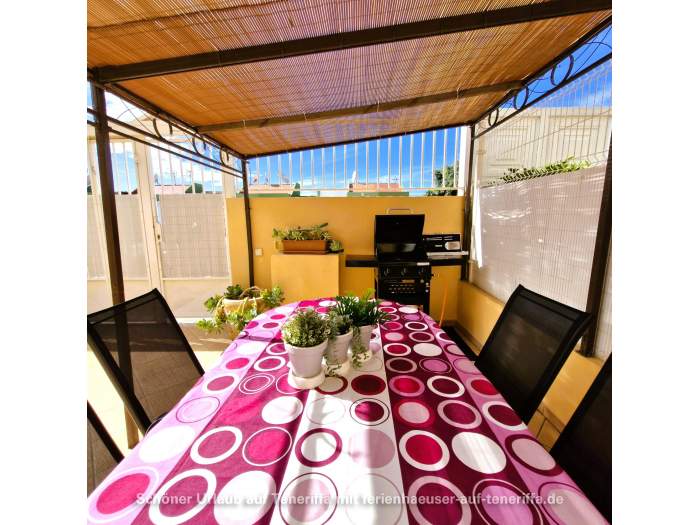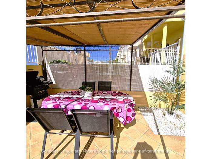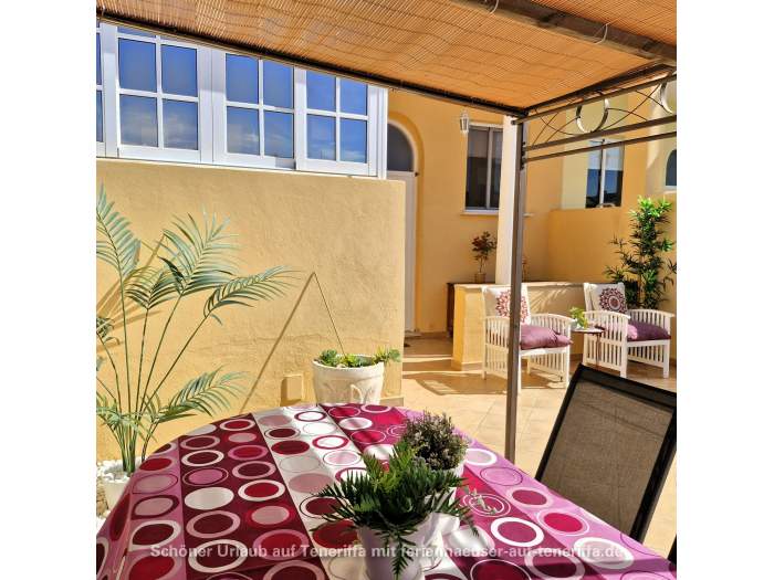 In Los Menores, einem ruhigen Ort bei Adeje, liegt dieses modern eingerichtete Reihenhaus, das vor allem durch seine Terrassen glänzt. Hinzu kommt die günstige Lage etwas außerhalb des Tourismus, aber noch immer dicht dran am Komfort einer touristischen Infrastruktur. Mit dem Mietwagen liegen viele Strände des Südwestens dicht bei.