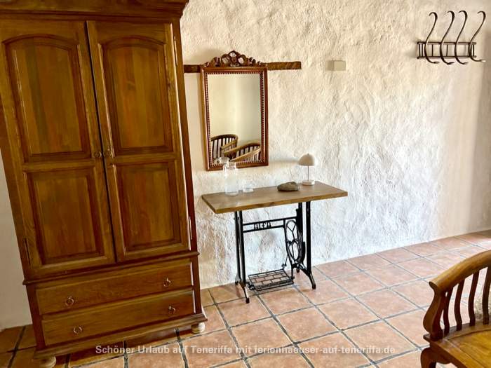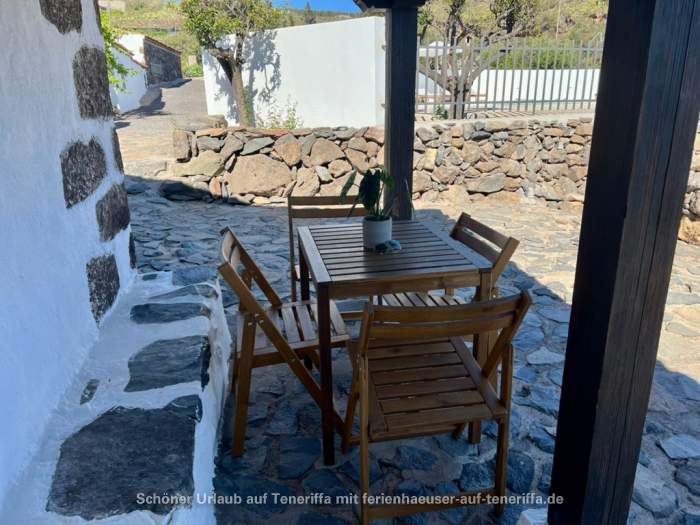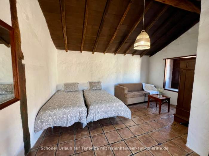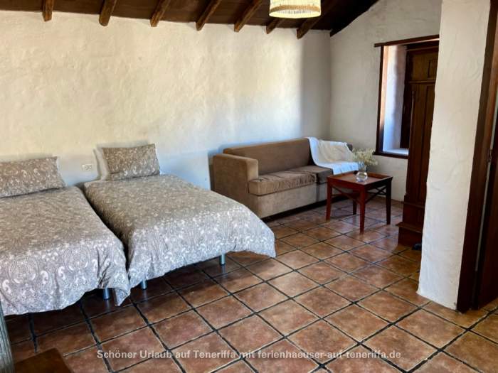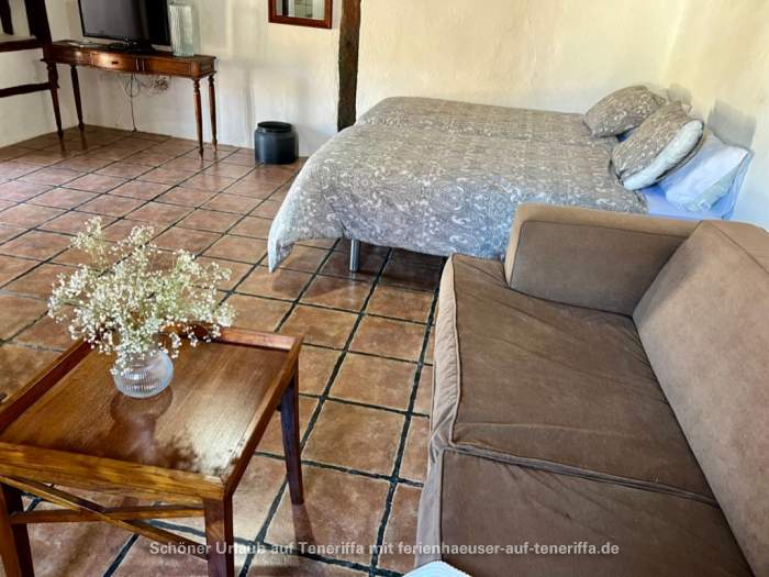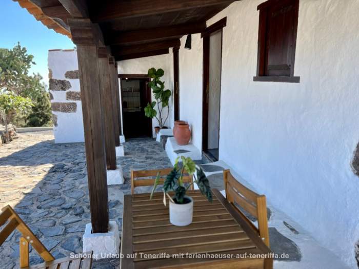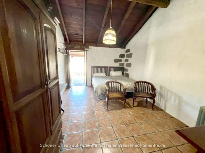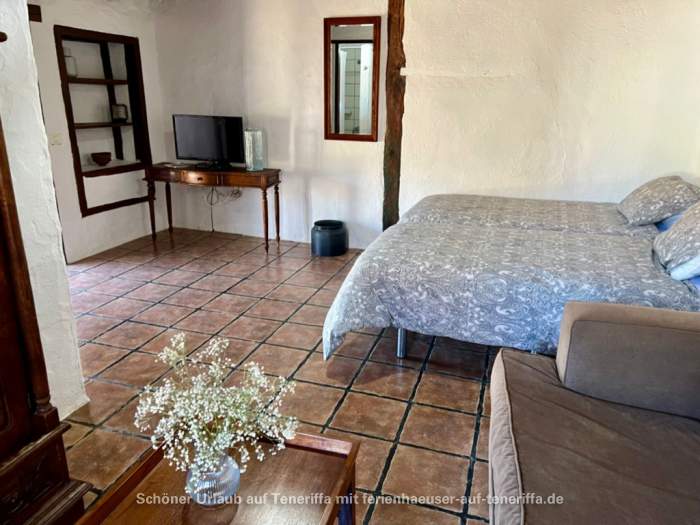 Das Haus besitzt eine traditionelle kanarische Besonderheit: Alle Räume sind ausschließlich von außen zugänglich. Die Küche und die Schlafzimmer mit En-suite-Bädern erreichen Sie über die überdachte Terrasse auf der linken Seite, den Wohn- und Schlafraum über die rechte Seite.