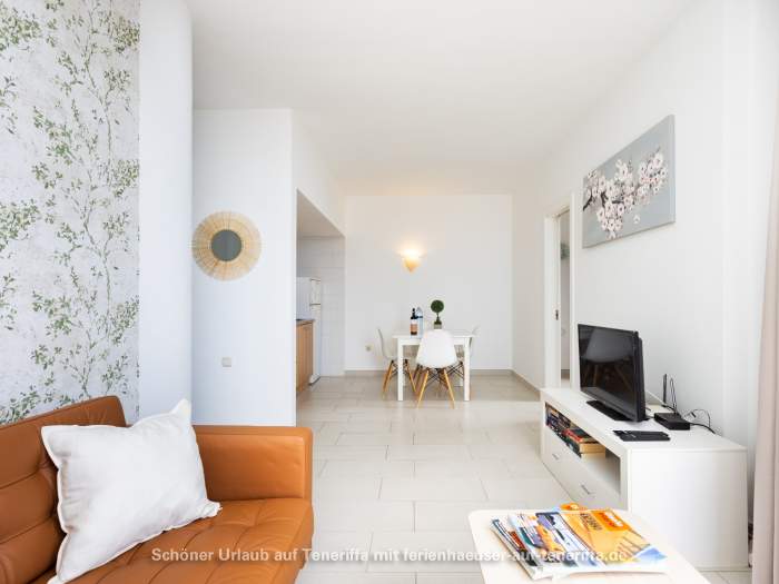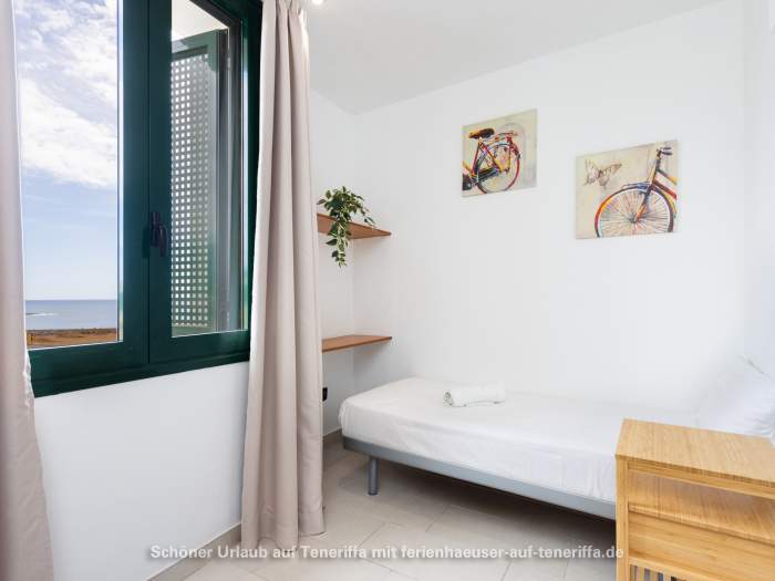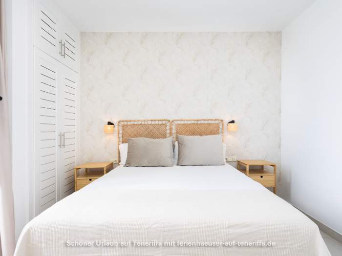 Die Ferienwohnung ist 50 m² groß und bietet Platz für 1-3 Gäste, ideal sowohl für einen schönen Urlaub als auch für einen längeren Winteraufenthalt. Das Gebäude Taucho verfügt über einen Aufzug. Beim Betreten der Wohnung sehen Sie die komplett ausgestattete Küche, den Esstisch und das Wohnzimmer mit SAT-TV und WLAN. Der Balkon bietet einen spektakulären Meerblick. Das Badezimmer ist mit WC, Dusche und Waschmaschine ausgestattet. Es gibt zwei Schlafzimmer: eines mit einem Einzelbett und eines mit einem Doppelbett.