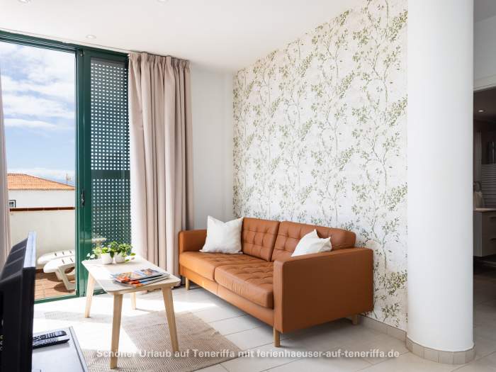 Auf dem Dach des Gebäudes befindet sich ein Swimmingpool mit Sonnenliegen, von dem aus Sie die spektakuläre Aussicht genießen und in Ruhe sonnenbaden können. Dies ist ein fantastischer Ort für Naturliebhaber – die Punta Blanca Promenade lädt zum Spazieren und Joggen am Rande des Ozeans ein, es gibt hervorragende Angelplätze und natürliche Pools. Die Klippen von Los Gigantes sind nur wenige Autominuten entfernt und der einzigartige schwarze Sandstrand von Playa La Arena ist in 5 Minuten zu Fuß erreichbar. Der Ort ist weniger überlaufen als Costa Adeje.