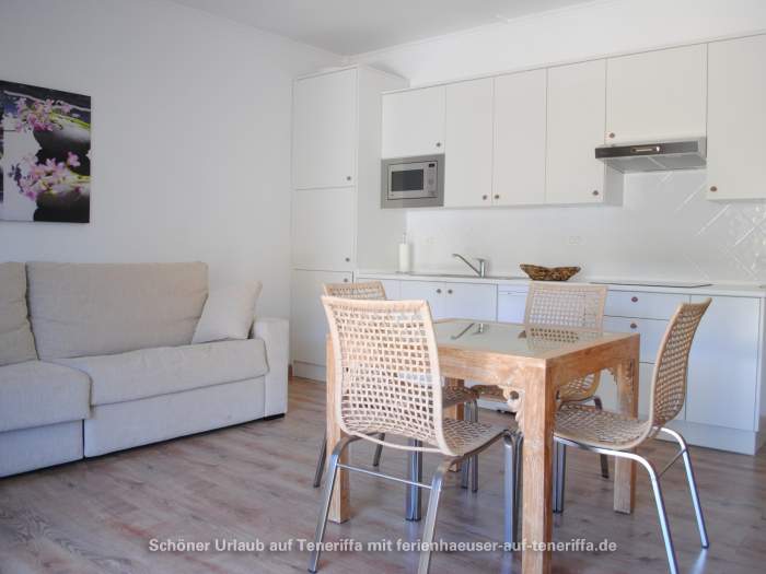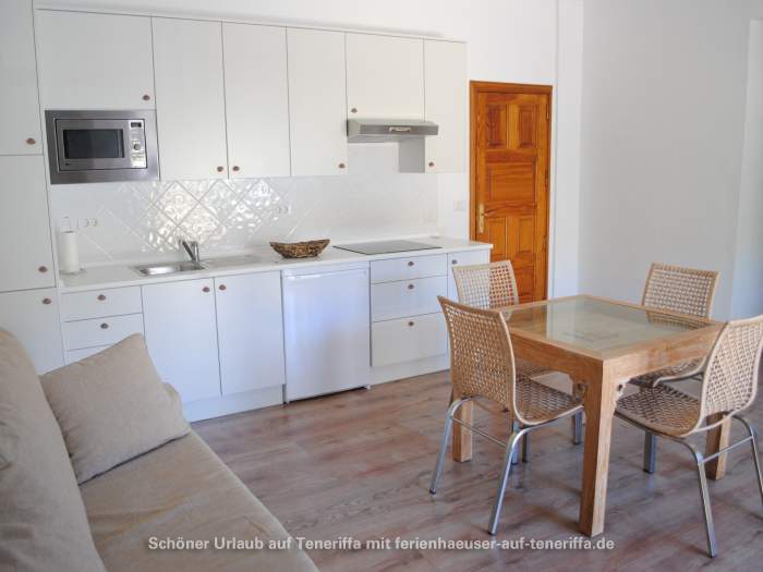 Das Haus wird indirekt durch einen typisch kanarischen, mit alten Sitzmöbeln ausgestatteten Patio (kleiner Innenhof) in zwei Wohnbereiche getrennt. Der Zweite, auf der anderen Seite liegende Bereich ist ein modern ausgestattetes Wohnstudio mit bequemer Schlafcouch (180x200), einer ebenfalls komplett eingerichteten Küchenzeile und einem schönen Esstisch für 4 Personen.